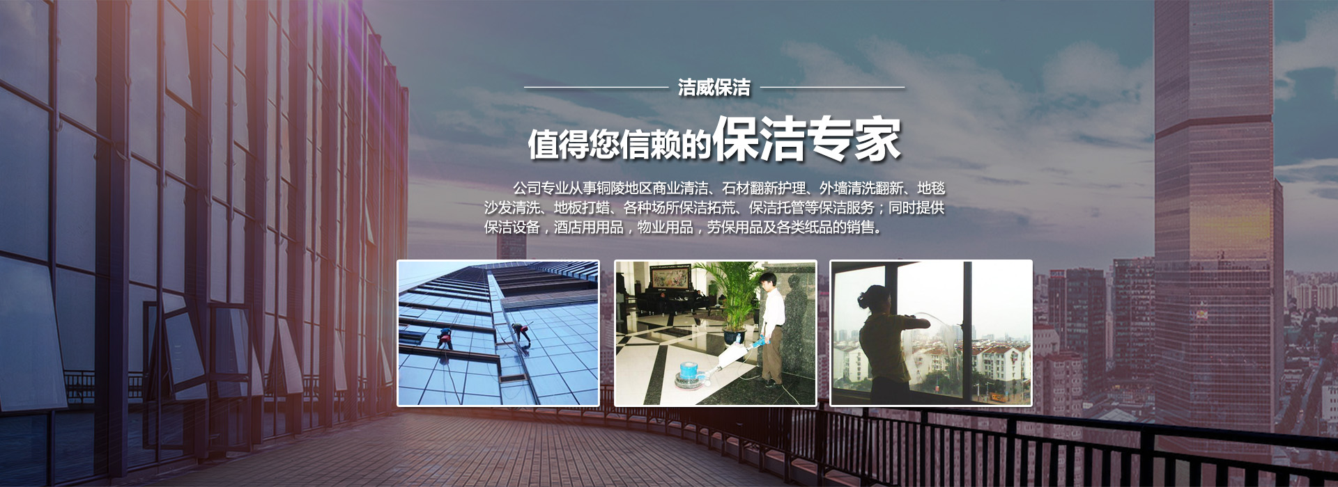 銅陵潔威保潔公司努力打造銅陵保潔行業(yè)的優(yōu)質(zhì)服務(wù)。您的滿(mǎn)意,我們的追求,潔威公司竭誠為您服務(wù) !